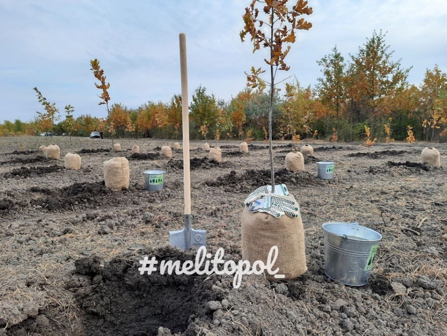 Первые дубы из планируемой рощи на 15 гектар были высажены возле поселка Мирный на Мелитопольщине.