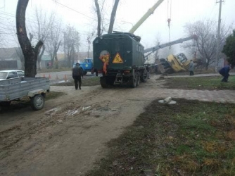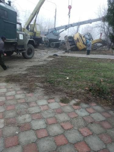 В Мелитополе произошло "коммунальное ДТП" - под землю ушел экскаватор (фото, видео)
