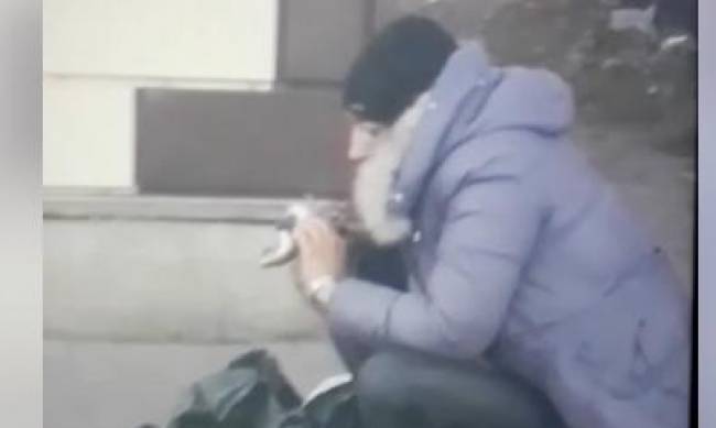 В Полтаве женщина посреди белого дня на улице ела живого голубя.