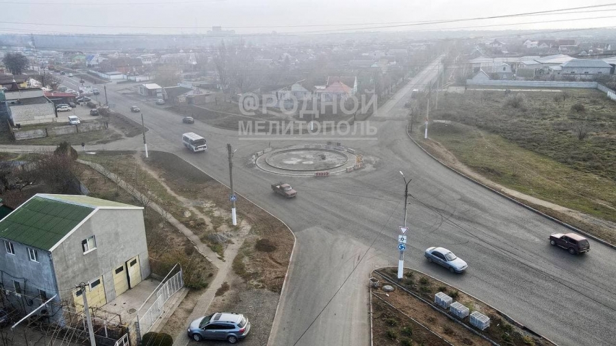 На перекрёстке улицы Леваневского и Каховского шоссе в Мелитополе ведутся работы по формированию кругового движения.
