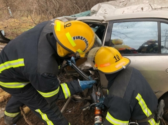 Спасатели Мелитопольского горрайонного управления ГСЧС вырезали водителя с помощью пневмоинструмента.