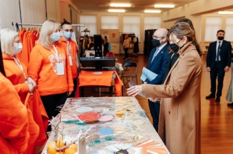 - К нам подошла Елена Зеленская и мы ей рассказали, кто мы и откуда, говорили о Мелитополе, о наших социальных предприятиях, о центре помощи женщинам "Фиалка" о том, как мероприятия проводятся в городе по противодействию гендернообусловленному насилию, - рассказала "МВ" Елена Овсянникова – председатель благотворительной организации "БФ "Все возможно". - Первая Леди купила у нас детскую футболку для сына и попросила помочь выбрать принт на футболку. Остановилась Елена Зеленская на изображении лисенка, потому что это животное нравится ее сыну. При ней мы нанесли изображение на одежду.
