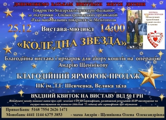- Кроме спектакля будет организована и ярмарка, средства, вырученные от продажи билетов и работ ребят будут направлены Андрею Щенникову - мелитопольцу, который нуждается в операции, - добавила Арина Митева. - У нас уже есть планы и на весну, будет другой формат. Но также, по итогам проведения мероприятия, которое будет носить объединяющий характер для всех наших национальных обществ, оказана адресная помощь ребенку, который в этом нуждается.