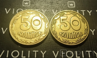Украинец продает две монеты из латуни номиналом 50 копеек.