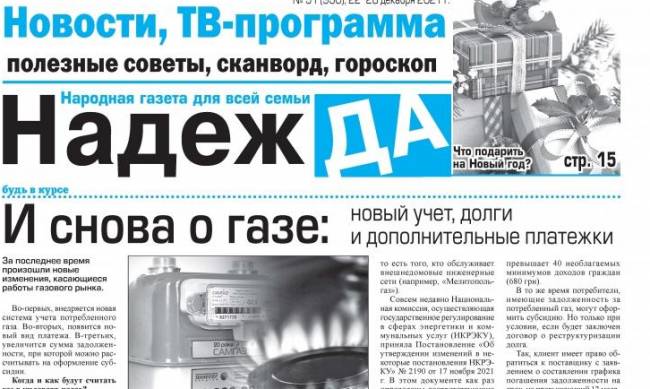 О чем можно прочитать в свежем номере газеты «НАДЕЖДА» от 22 декабря: