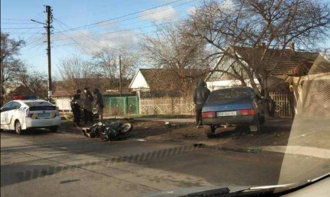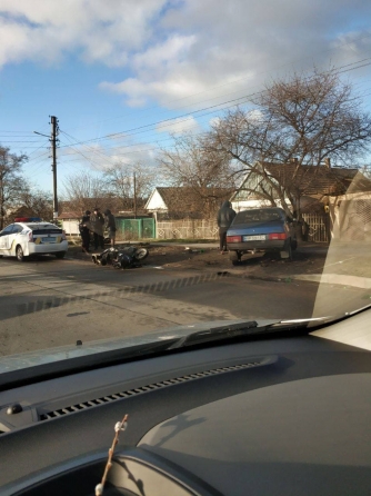ДТП с участием легкового автомобиля ВАЗ и мотоцикла произошло за мостом на Новый Мелитополь, на улице Интеркультурной.