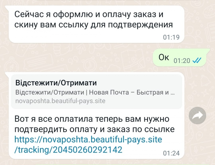 "В общем, будьте бдительны. Ссылка на "накладную": https://novaposhta.beautiful-pays.site/pay/20450260292142", - говорится в публикации.