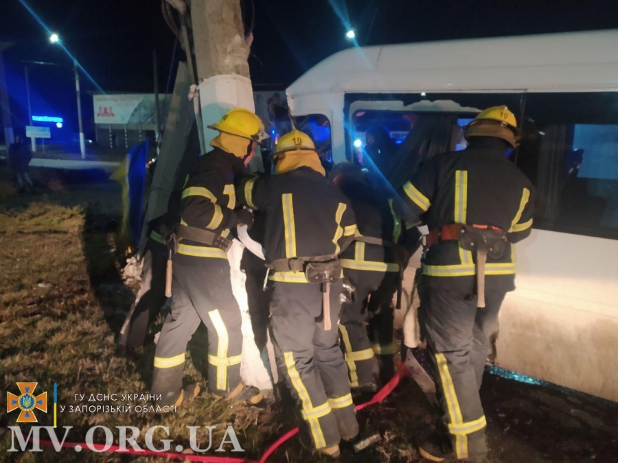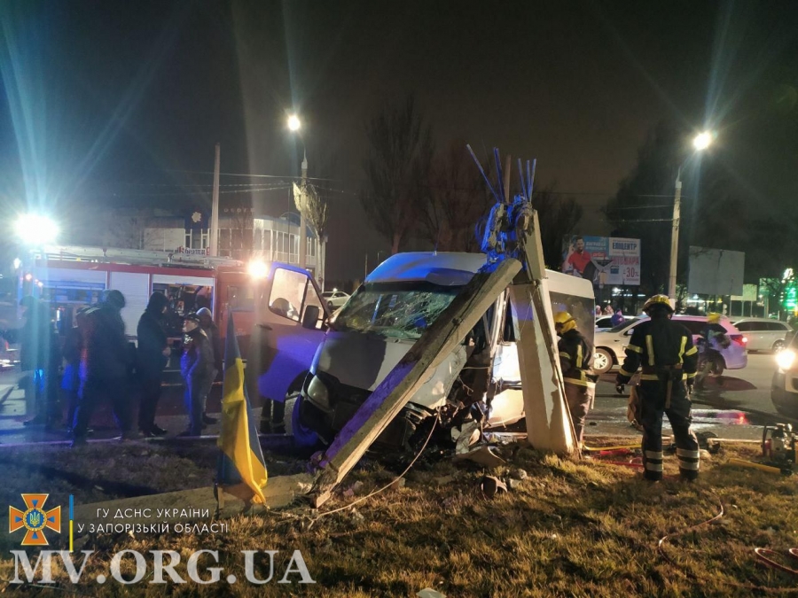 В Мелитополе спасатели деблокировали водителя из изуродованного в результате ДТП микроавтобуса.