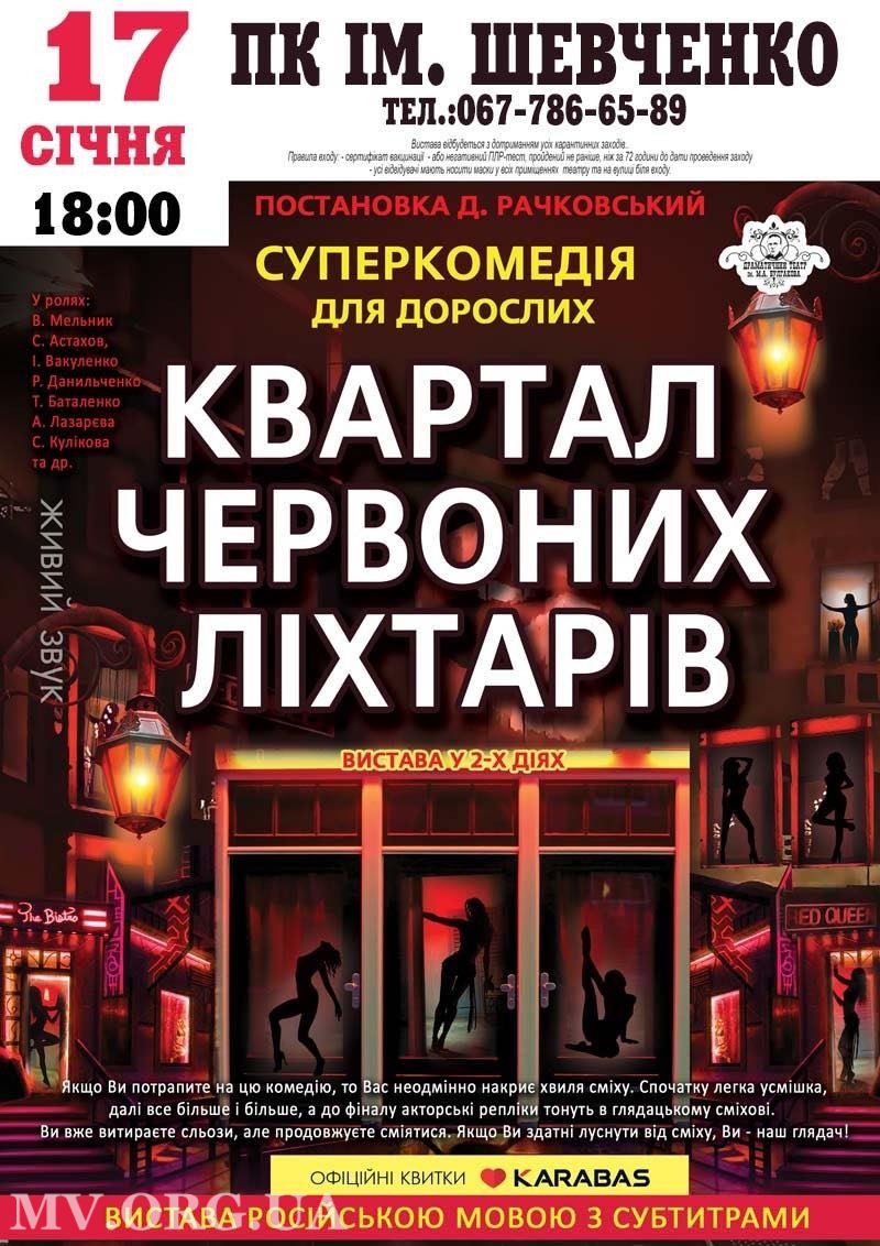 17 января мелитопольцев ждет театральный вечер. Суперкомедия для взрослых "Квартал красных фонарей" будет держать в тонусе зрителей на протяжении двух актов.
