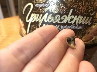 - Супруга отрезала порцию торта, переложила в блюдце, собралась кушать и наткнулась вилкой на что-то твердое, - уточнил горожанин. - Присмотрелась, а это ореховая скорлупа. Еще и с острым краем! И пораниться можно, а если бы попал на зуб такой кусочек, то и поломать его запросто. Вроде бы и фирма известная и тут такая оплошность.