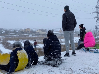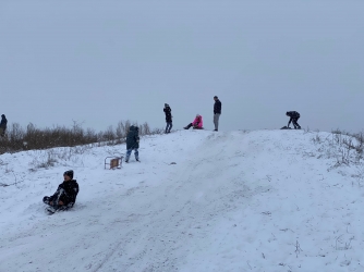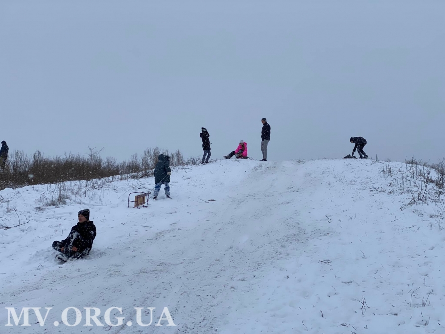 В Мелитополе на трассе мотокросса в районе Песчанского ручья уже собралась детвора и взрослые, организовав катания с горок на санках и не только.