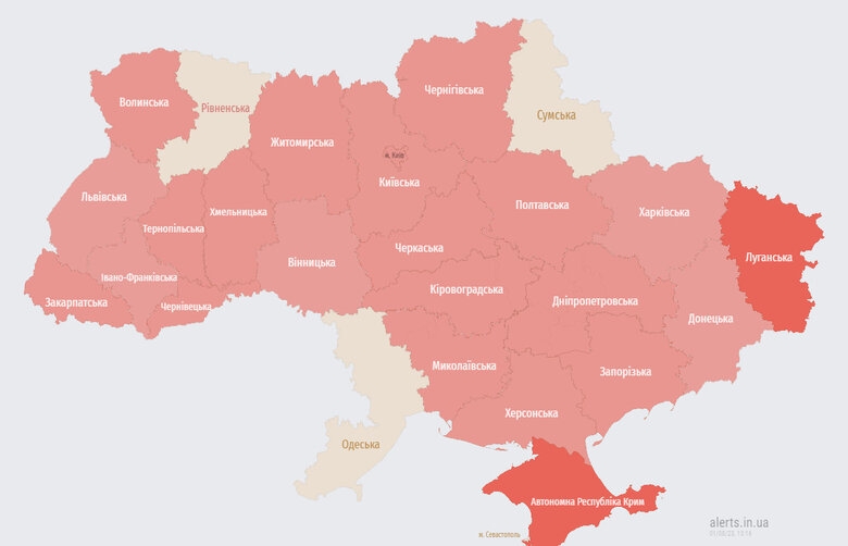 Як можна побачити з онлайн-мапи повітряних тривог, у Запоріжжі та низці регіонів України вдруге за день оголошено про небезпеку. Станом на 13.38 пішли відбої тривоги по регіонах.