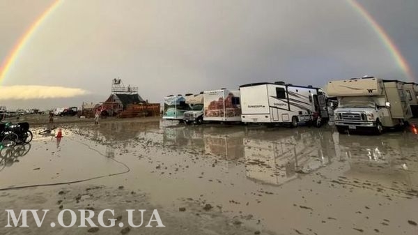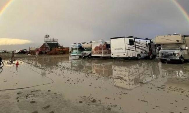 Посетителей фестиваля Burning Man, который проходит в пустыне в американском штате Невада, попросили беречь еду и воду после того, как проливной дождь превратил лагерь в грязевую ванну