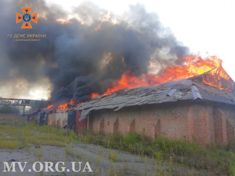 В Оріхові вогнеборці приборкали пожежу у складській будівлі. Загальна площа охоплена вогнем склала 1600 кв.м.