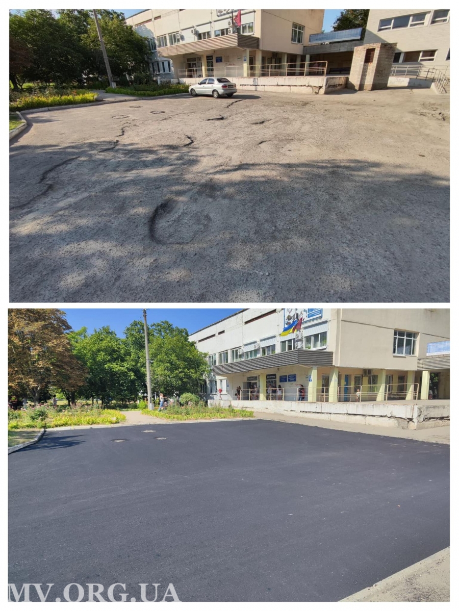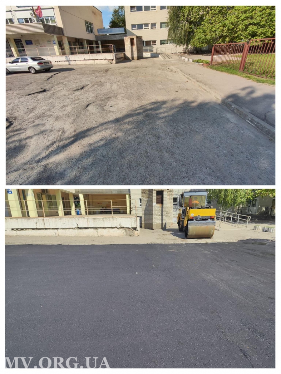 Наразі біля 5 дитячої лікарні відремонтували під’їзні шляхи та майданчик перед поліклінікою.