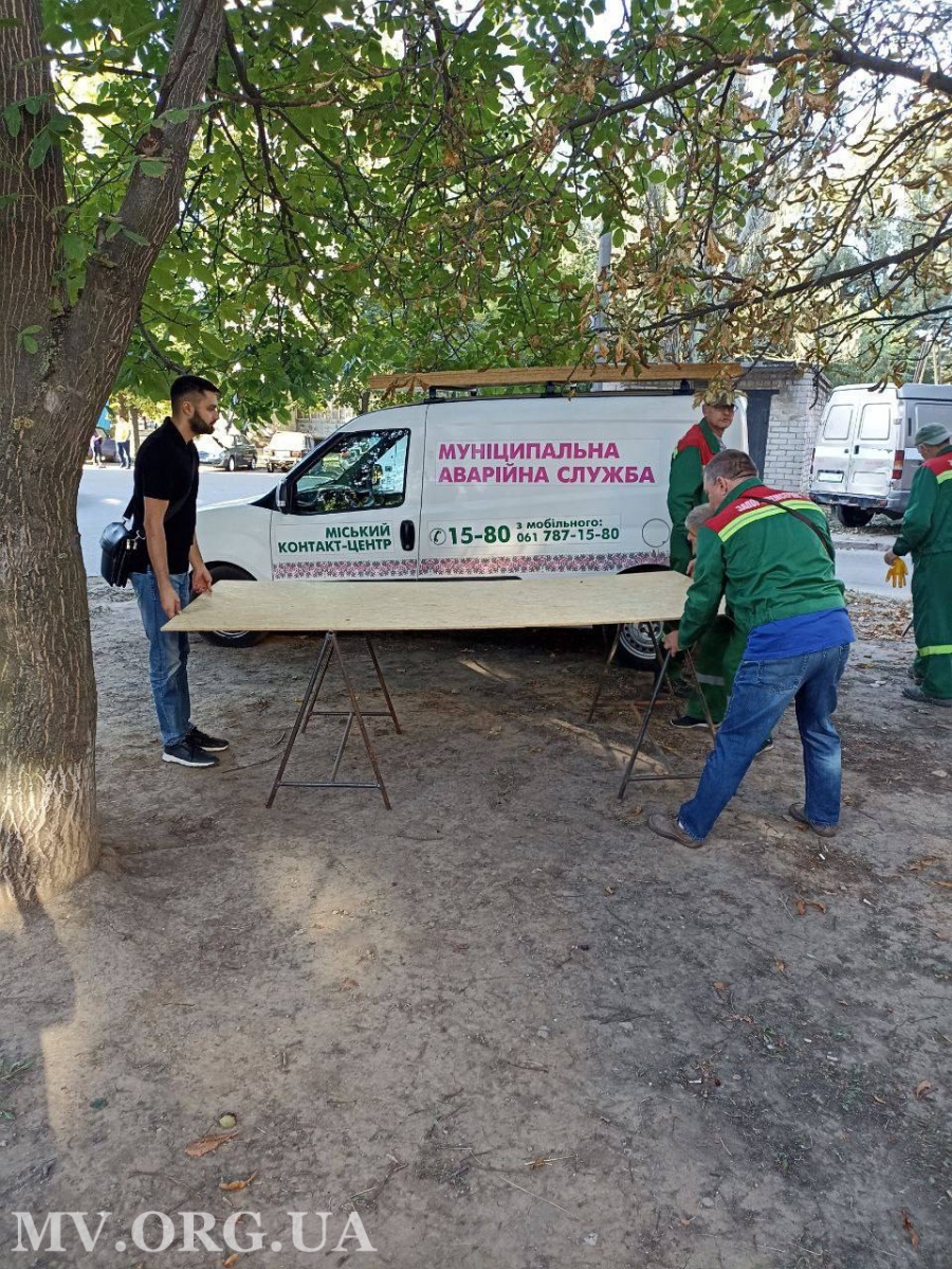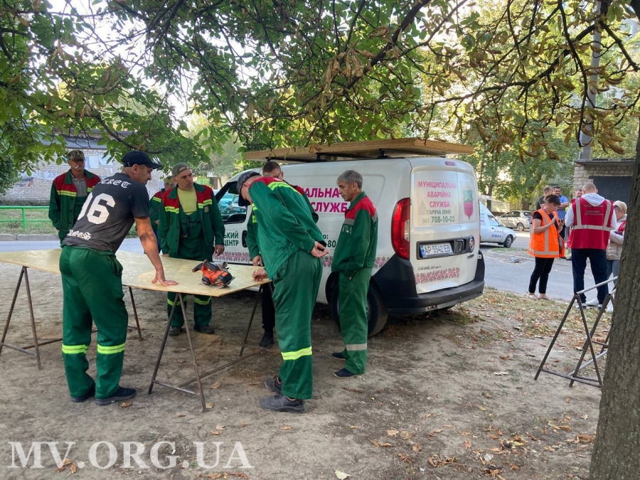 На місці працюють представники Муніципальної аварійної служби КП «Запоріжремсервіс» та міської спеціалізованої аварійно-рятувальної служби. Комунальники визначають обсяги робіт, завозять матеріали та приступають до «закриття» вікон листами OSB.