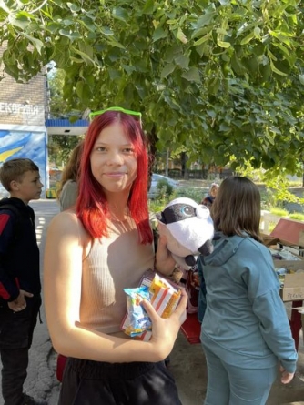 А Катруся Шпірна з Комишувахи 1 вересня пішла у перший клас. Дівчинка отримала в подарунок великий рожевий рюкзак, у якому також були зошити, фарби. Поки що красивий рюкзак буде зберігатися у кімнаті в шелтері. Але хочеться вірити, що прийде той час, коли закінчиться дистанційне навчання і Катруся піде з яскравим подарунком від небайдужих чехів до школи.