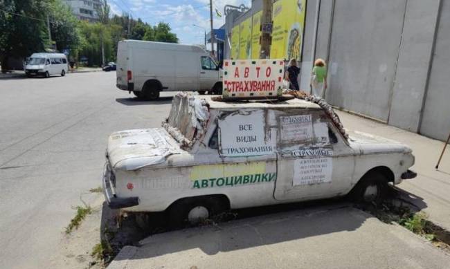 У Запоріжжі занедбану автівку перетворили на рекламну конструкцію