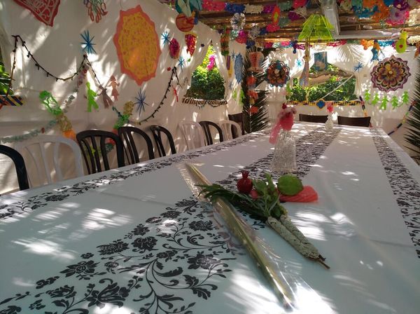 По обычаю праздничные и субботние свечи зажигают в шалаше, но если шалаш плохо защищен от ветра, свечи зажигают дома. Перед зажиганием произносят два благословения: