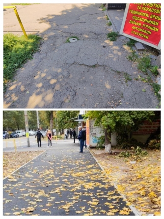 Наразі покриття тротуару та пішохідні переходи приведені до нормального стану згідно зі всіма державними нормами та стандартами.