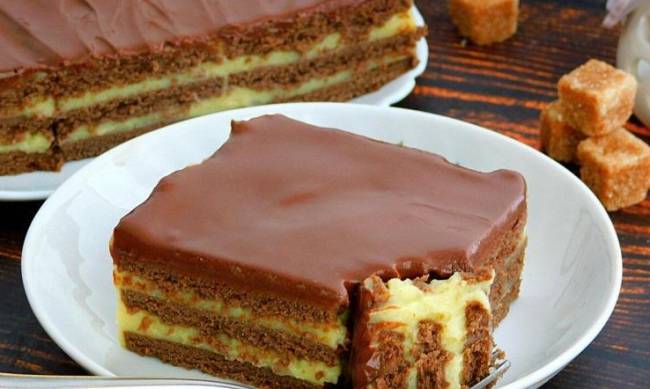 Буде потрібно тільки зробити найпростіший заварний крем і прошарувати ним пісочне печиво.