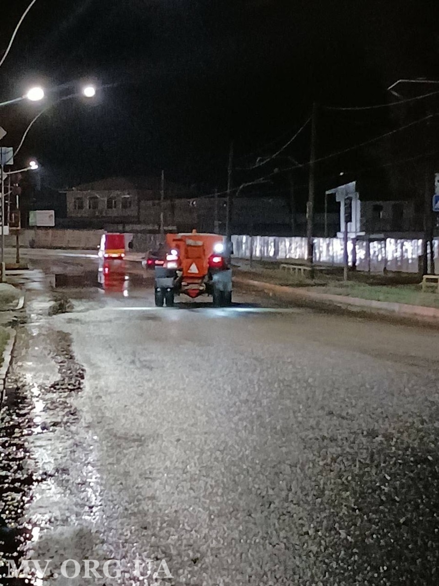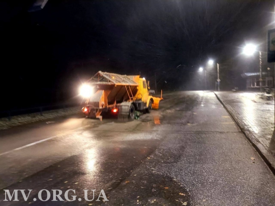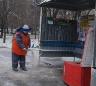 Також з ночі виконується обробка доріг протиожеледними матеріалами та посипка тротуарів і зупинок громадського транспорту. Працюють 43 одиниці техніки КП «ЕЛУАШ» та 94 працівники підприємства.
