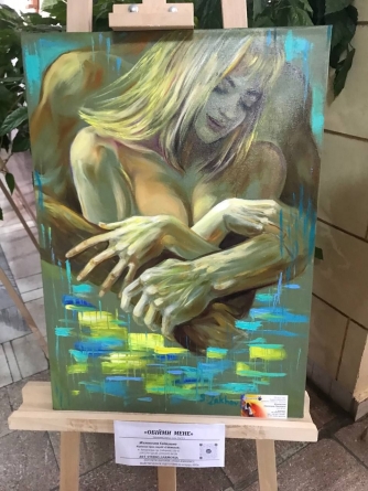 - “Обійми мене” написала у 2022 році, - ділиться художниця. - Вона не про війну, вона про підтримку один одного. Для мене це дуже цінна картина. Це про те, що ми, жінки, незахищені, і ми хочемо спиратися на міцне чоловіче плече. На написання картини надихнула пісня Святослава Вакарчука “Обійми мене”. Потім робили кліп на цю пісню. У ньому можна побачити представлені на цій виставці картини “Обійми мене” та “Соняшник - символ України”, а також ще кілька моїх робіт. Кліп можна подивитися на ютубі.