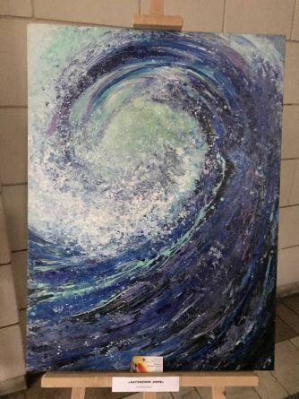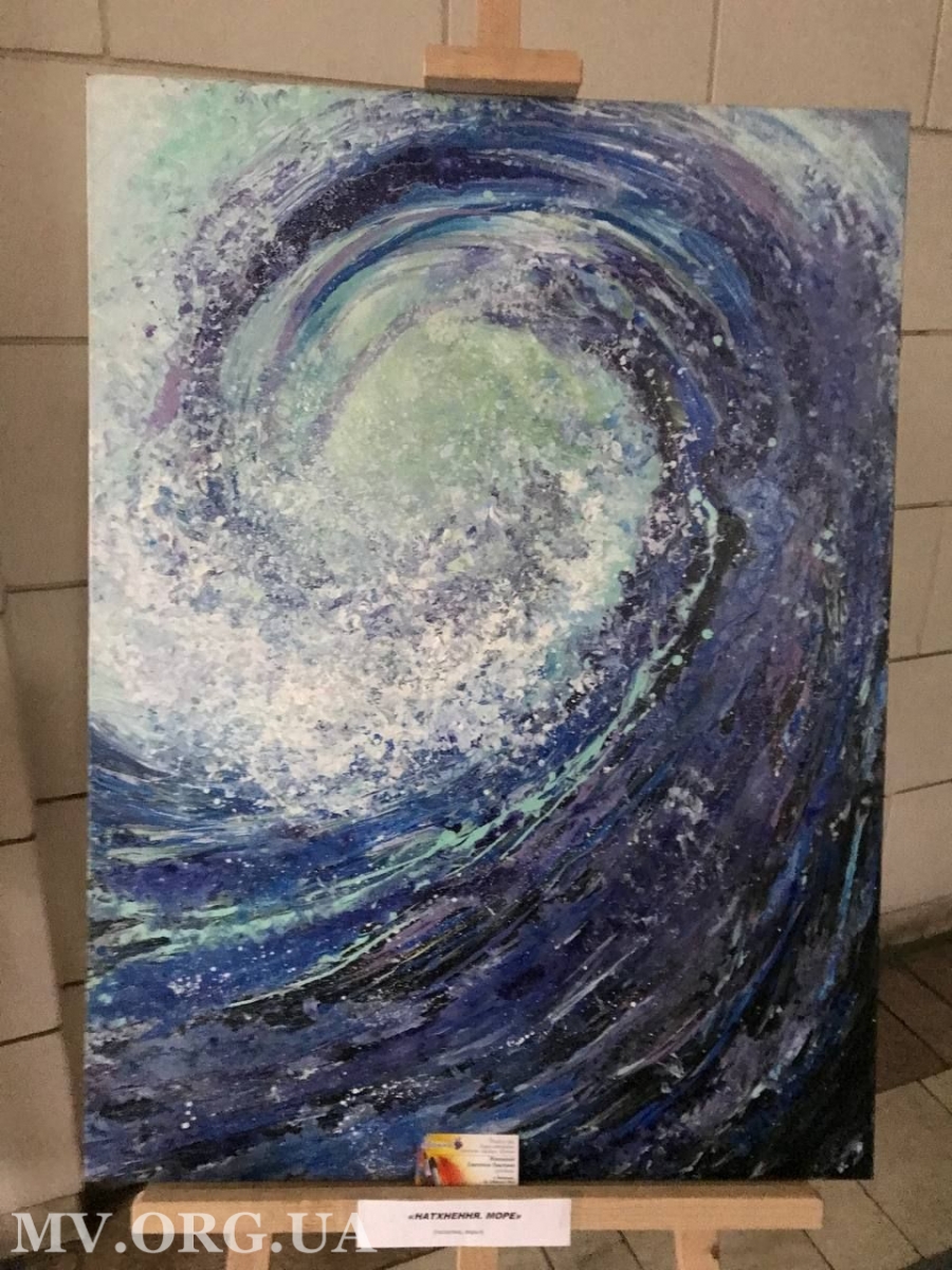 Дуже люблю абстракцію, подобається техніка “рідкий акрил” - можна виконати дуже яскраві, незвичайні роботи. У цій техніці виконана робота “Зимова казка”, з якої починається виставка.