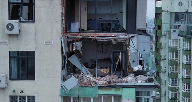 07:28 Кадри Радіо Свобода з місця влучання у житловий будинок в Солом’янському районі Києва