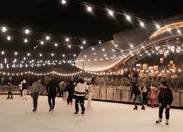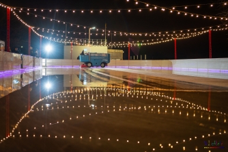 Між іншим, можна приходити не лише кататися на ковзанах, а й просто відпочити — попити кави чи глінтвейну, які можна замовити у зоні фудкорту, покататися на гойдалках, зрештою тут гарно спостерігати за красивим заходом сонця.