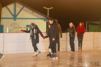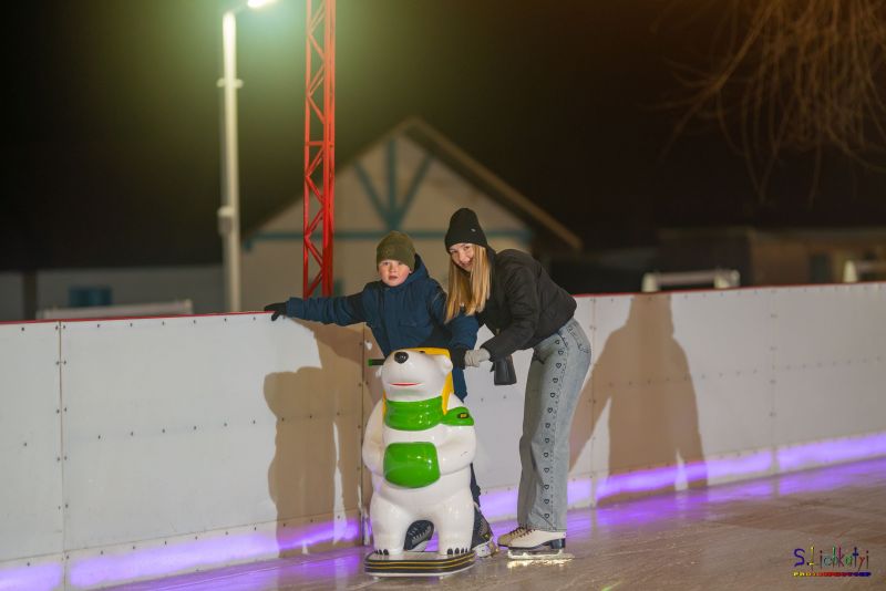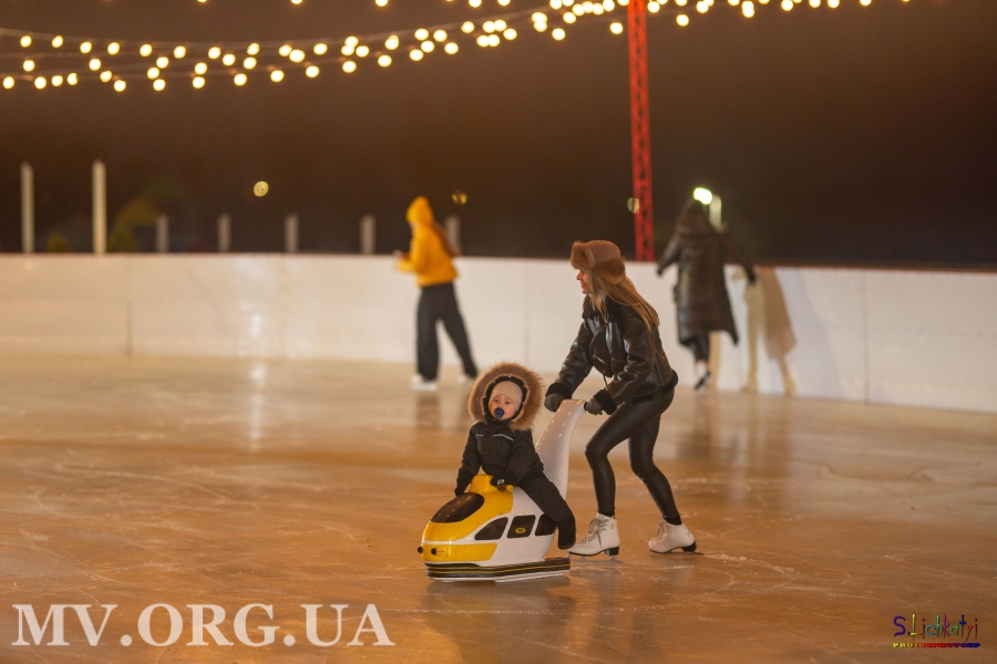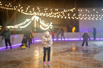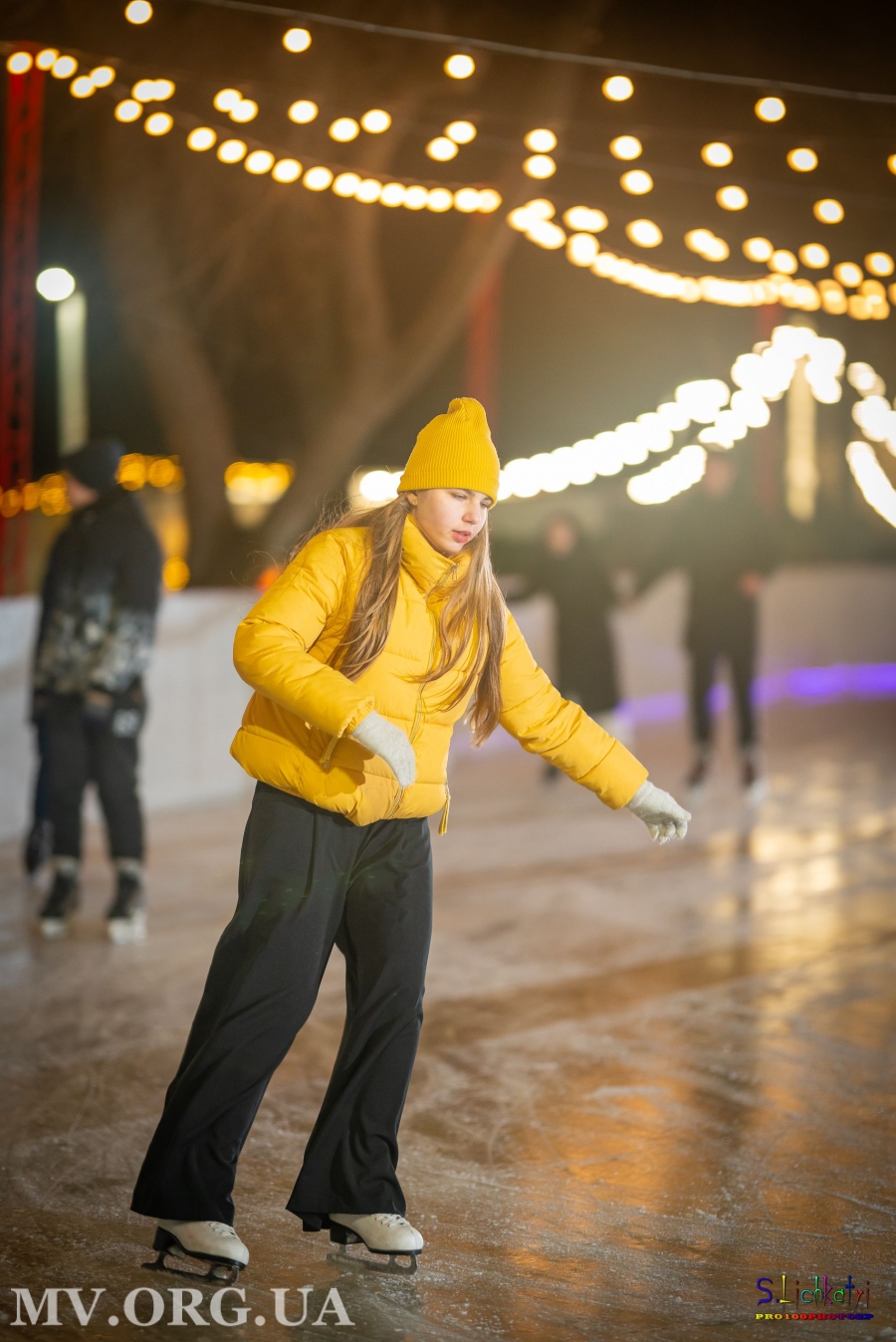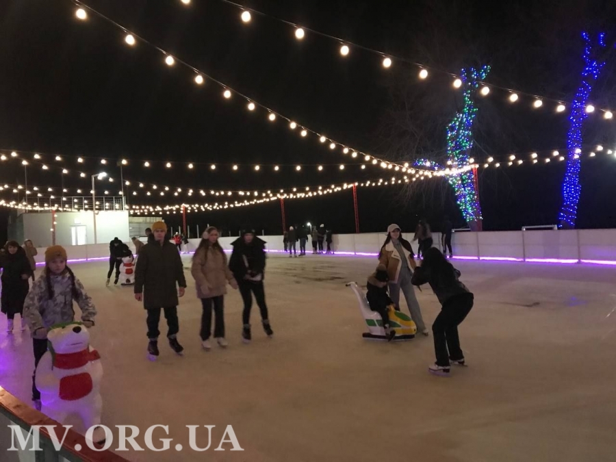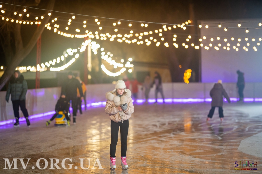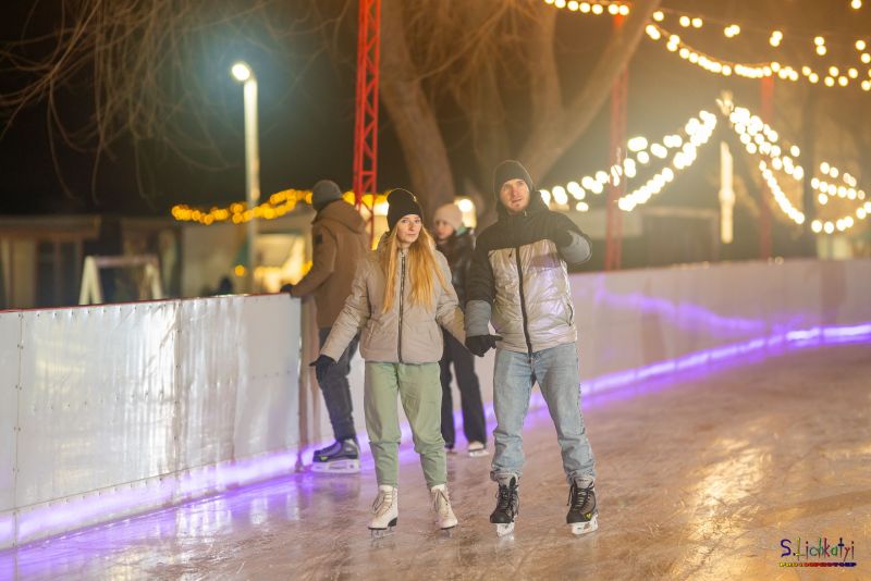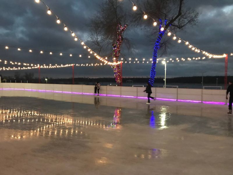 Атмосфера там була чарівна — поруч новорічна ялинка, прикрашена іграшками, яскрава ілюмінація. У цьому році каток “переїхав” з центру у більш мальовниче місце - на берег Дніпра. Якщо влітку безперечним магнітом для відпочивальників був басейн на території комплексу, то взимку ним став каток. До речі, він єдиний у Запоріжжі просто неба — ще два працюють, накриті шатрами.