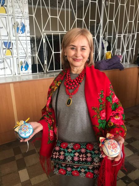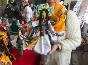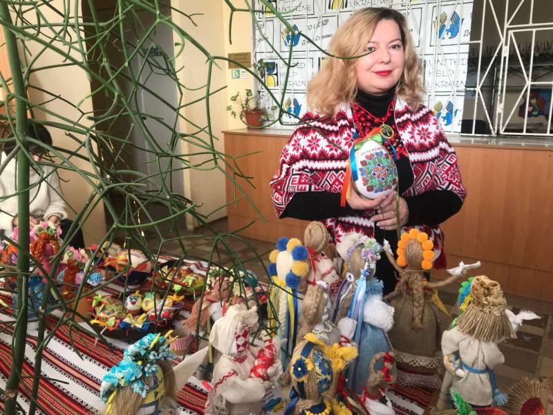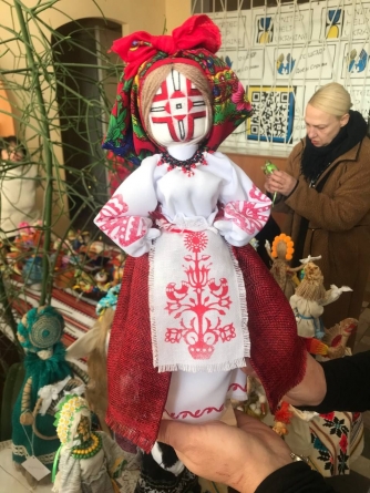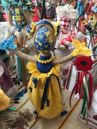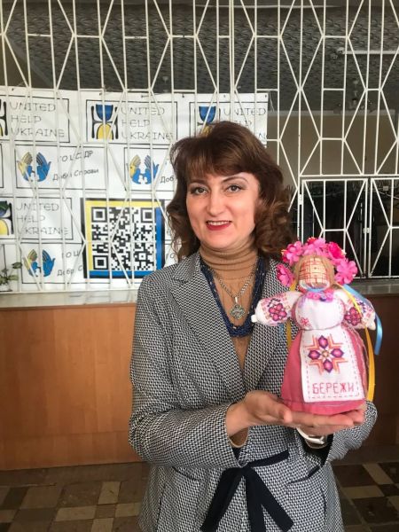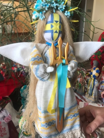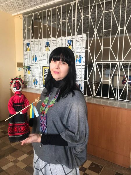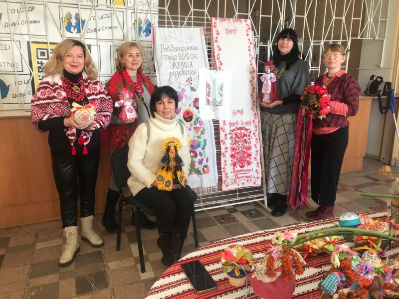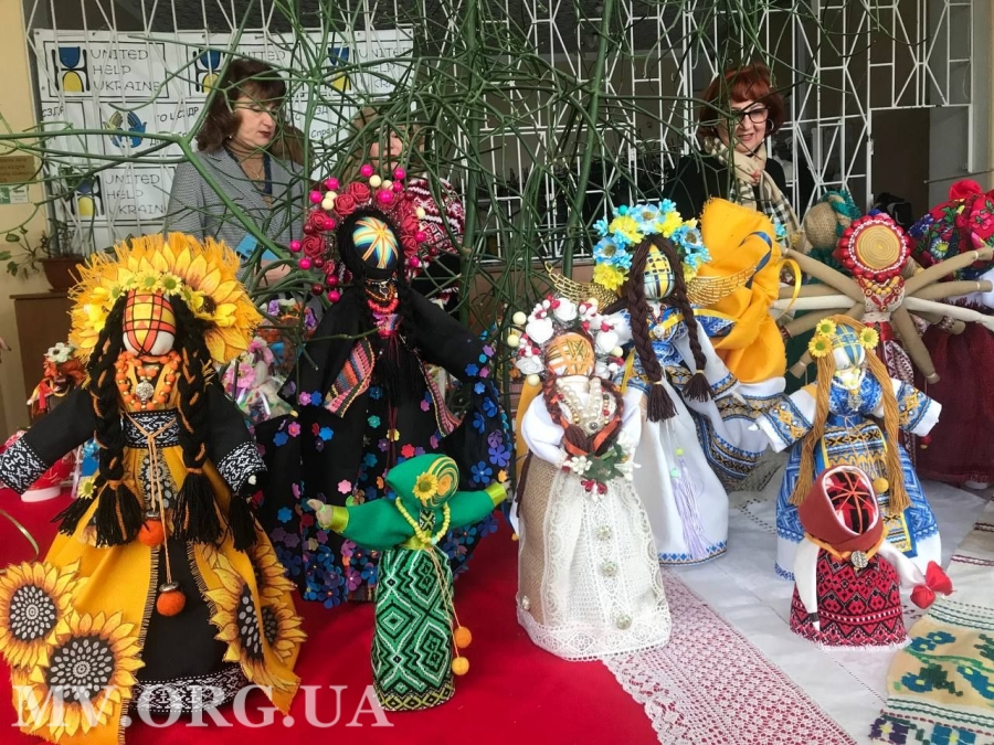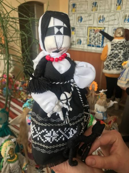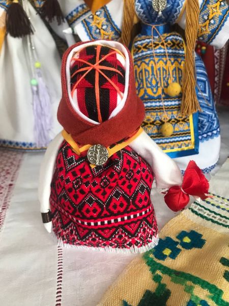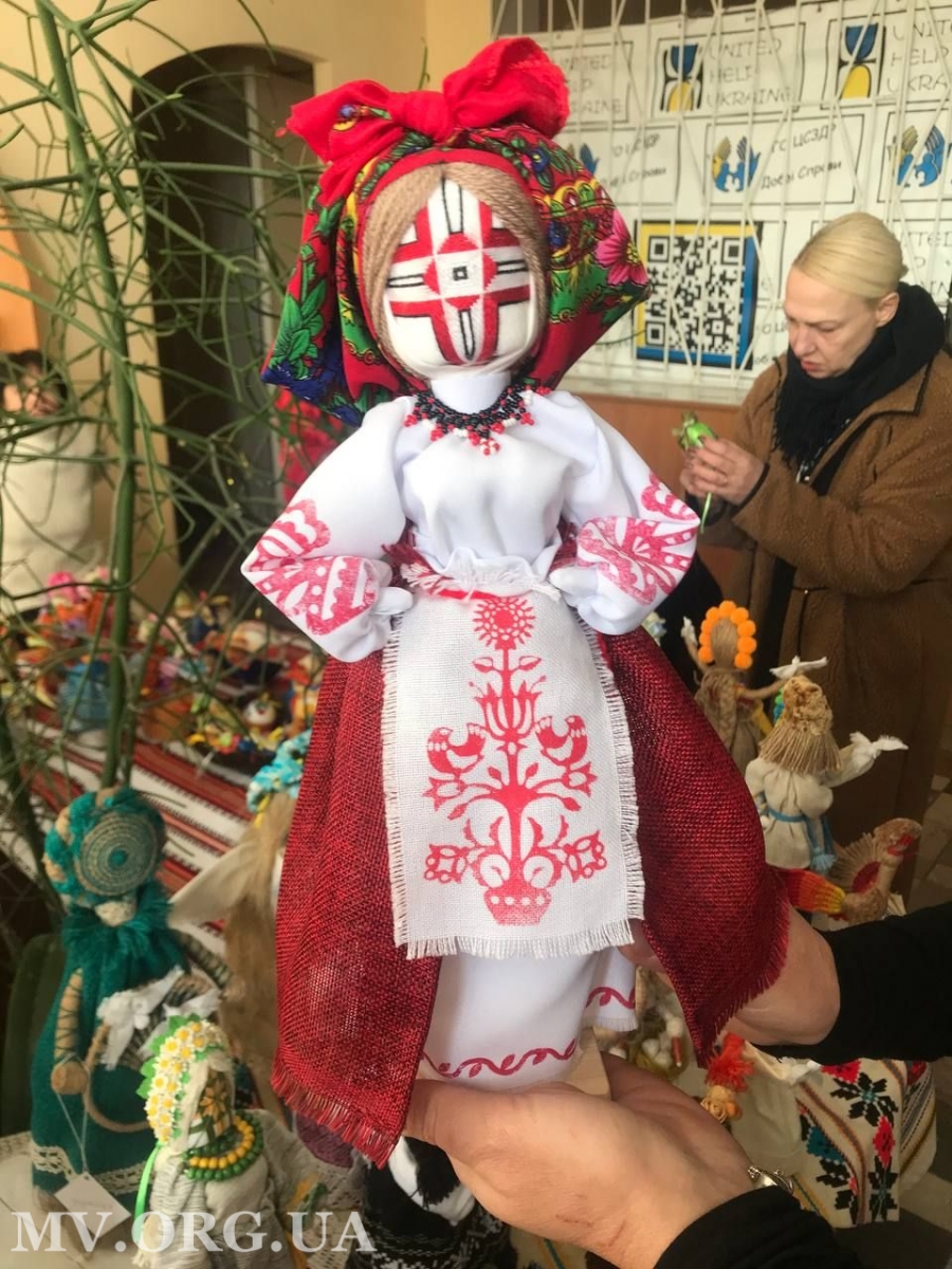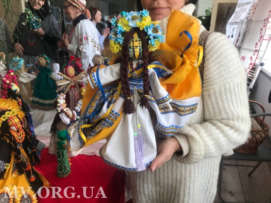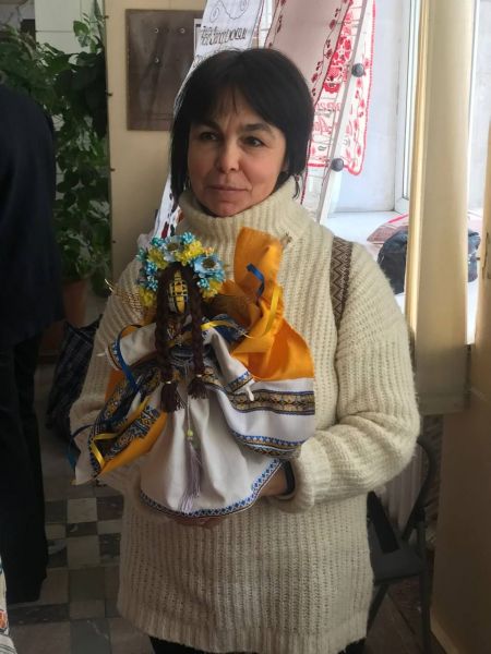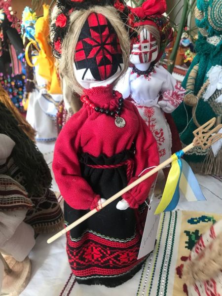 На виставці звертала на себе увагу велика лялька-мотанка в національних кольорах. Це - Перемога, її зробила членкиня Національного союзу художників України Оксана Кіргеєва. Оксана - відома запорізька художниця, виготовленням мотанок займається близько року.