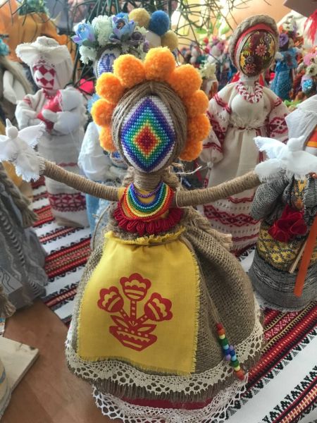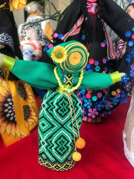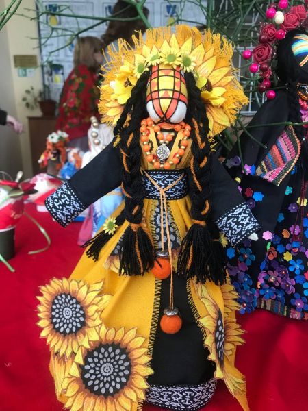 На виставці Оксана Кіргеєва представила кілька своїх ексклюзивних ляльок-мотанок. Королеву соняхів майстриня робила у серпні, у період цвітіння цих рослин. Майстриня ділиться, що комусь ця мотанка нагадує щось мексіканське.