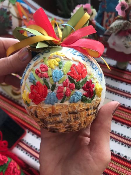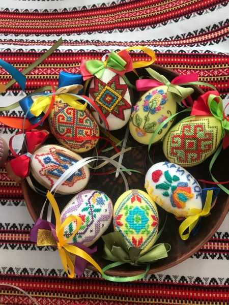 - Так. Перший десяток вишитих писанок, як то кажуть, пішов. Почала їх вишивати не тільки нитками, а й стрічками.