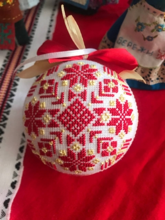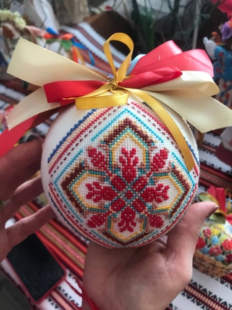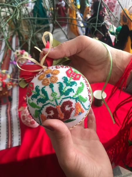 Берегиня представила колекцію невеличких ляльок-мотанок, дві нові кульки, вишиті вже після Нового року, і 10 вишитих великодніх писанок.