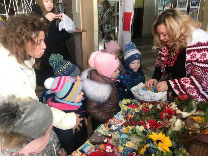Подивитися на виставку приходили не лише дорослі, а й маленькі гості. Кожному Олена Шевчук подарувала жовто-блакитного янгола. І порадила перед сном класти янгола під подушечку, щоб він оберігав їх сон і спокій. Діти були щасливі!