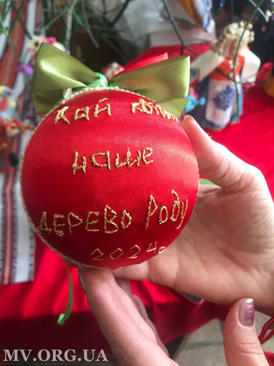 - На нових кульках вишила всі коди сили - Хрест, чотири зірки Алатир, - розповіла Людмила Гармаш. - Хрест майже у всіх світових культурах відомий як найдавніший і найбільший оберіг, символ Творця. Сакральний код сили зірка Алатир - давній оберег, символ гармонії і сили життя. Вишила також дерево життя, надписи “Україна була, є і буде завжди”, “Хай квітне наше дерево роду”,“Боже, Україну збережи”. Читала 40 молитв 90 Псалому і вишивала.