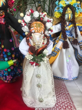 На виставці можна було також помилуватися і іншими ляльками-мотанками Оксани Кіргеєвої - яскравою Королевою снів, Веснянкою (з її допомогою закликають весну), Княгинею, класичними Зерновушкою (усередині неї знаходиться гречка, її робили, щоб був достаток у хаті) і Десятиручкою, “нерозлучниками” - персонажами поеми “Лісова пісня” Мавкою і Лукашем.