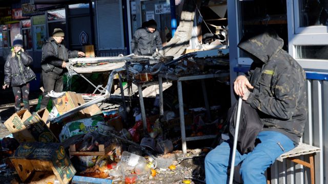 Як повідомляє AFP, місцева жителька на ім’я Тетяна розповіла місцевим ЗМІ, що почула над головою снаряд і сховалася під своїм прилавком.