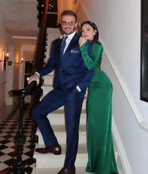 Наприклад, ексучасниця "Spice Girls", 49-річна дизайнерка Вікторія Бекхем зустрічала новий рік у витонченій зеленій сукні та обіймах коханого Девіда Бекхема.