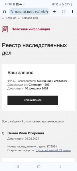 Согласно реестру, Иван Сечин умер 5 февраля. Публично о его смерти не сообщалось.