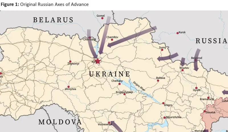 В аналізі британського Королівського інституту досліджень оборони та безпеки (RUSI), серед авторів якого є також екскомандувач десантно-штурмових військ ЗСУ Михайло Забродський, зазначено, що "північна вісь була головним напрямом, метою якого було оточення та захоплення Києва".