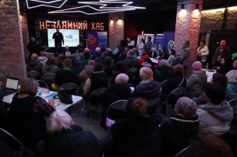 Захід у Незламному хабі, який широко анонсувався, викликав великий інтерес у внутрішньо переміщених осіб - зал в укритті був вщерть заповнений.