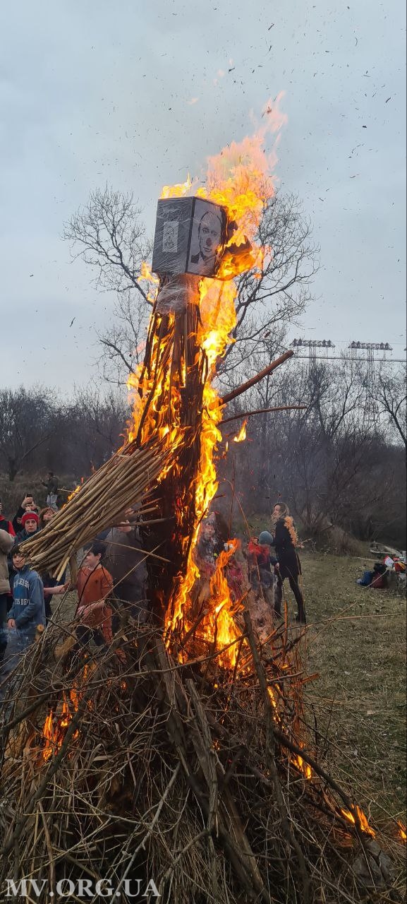 Сьогодні, 16 березня, в останній день Масниці, у Запоріжжі в урочищі Сагайдачному спалили опудало з портретом президента росії володимира путіна, за чиїм наказом 24 лютого 2022 року на територію України увійшла російська армія.