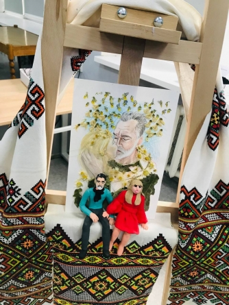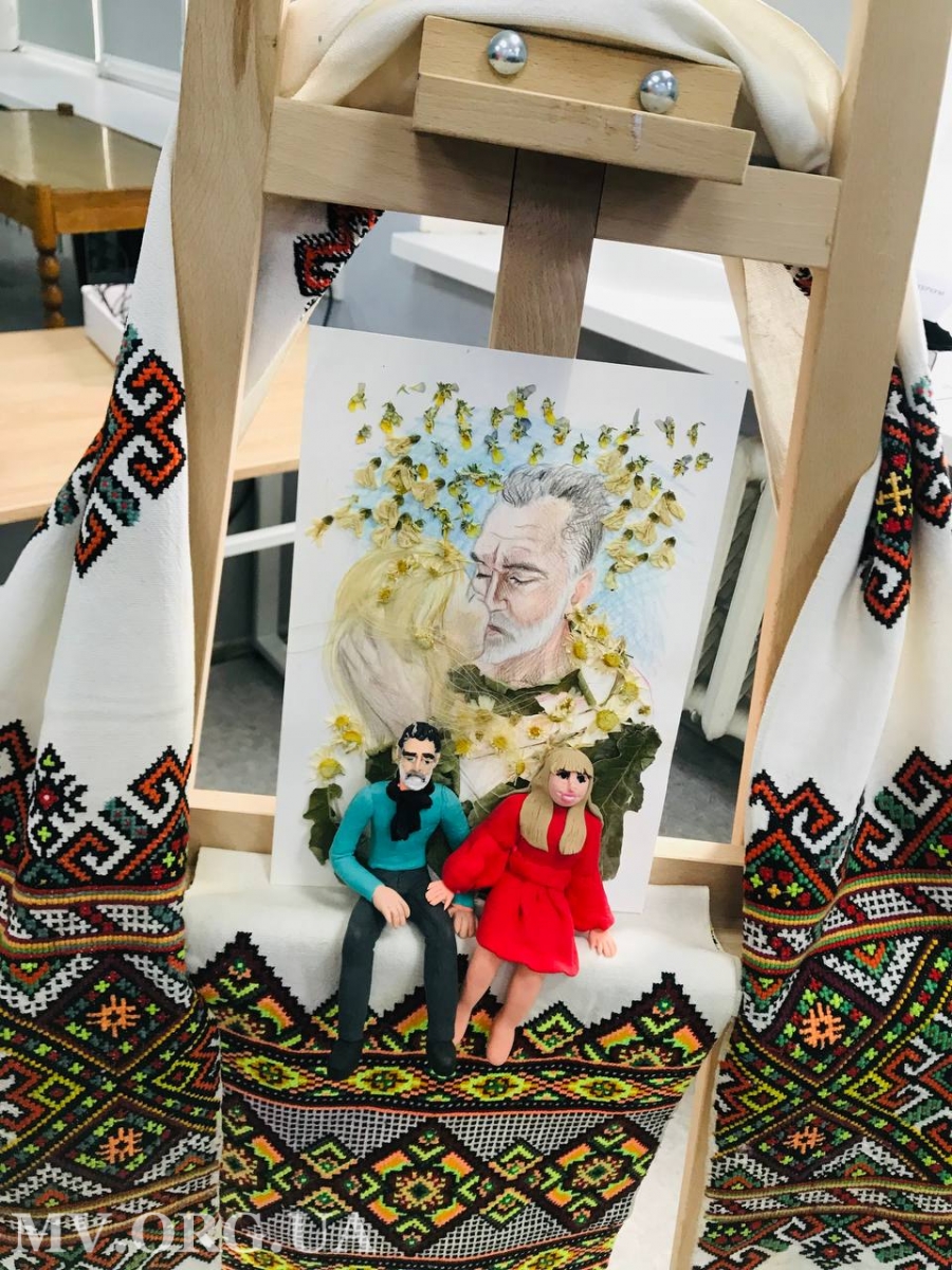 Авторка передала до картини дві фігурки (себе і коханого) і попросила Ольгу Плечун посадити їх так, щоб рука жінки була на коліні чоловіка.