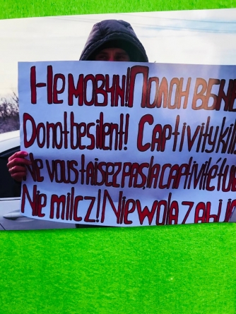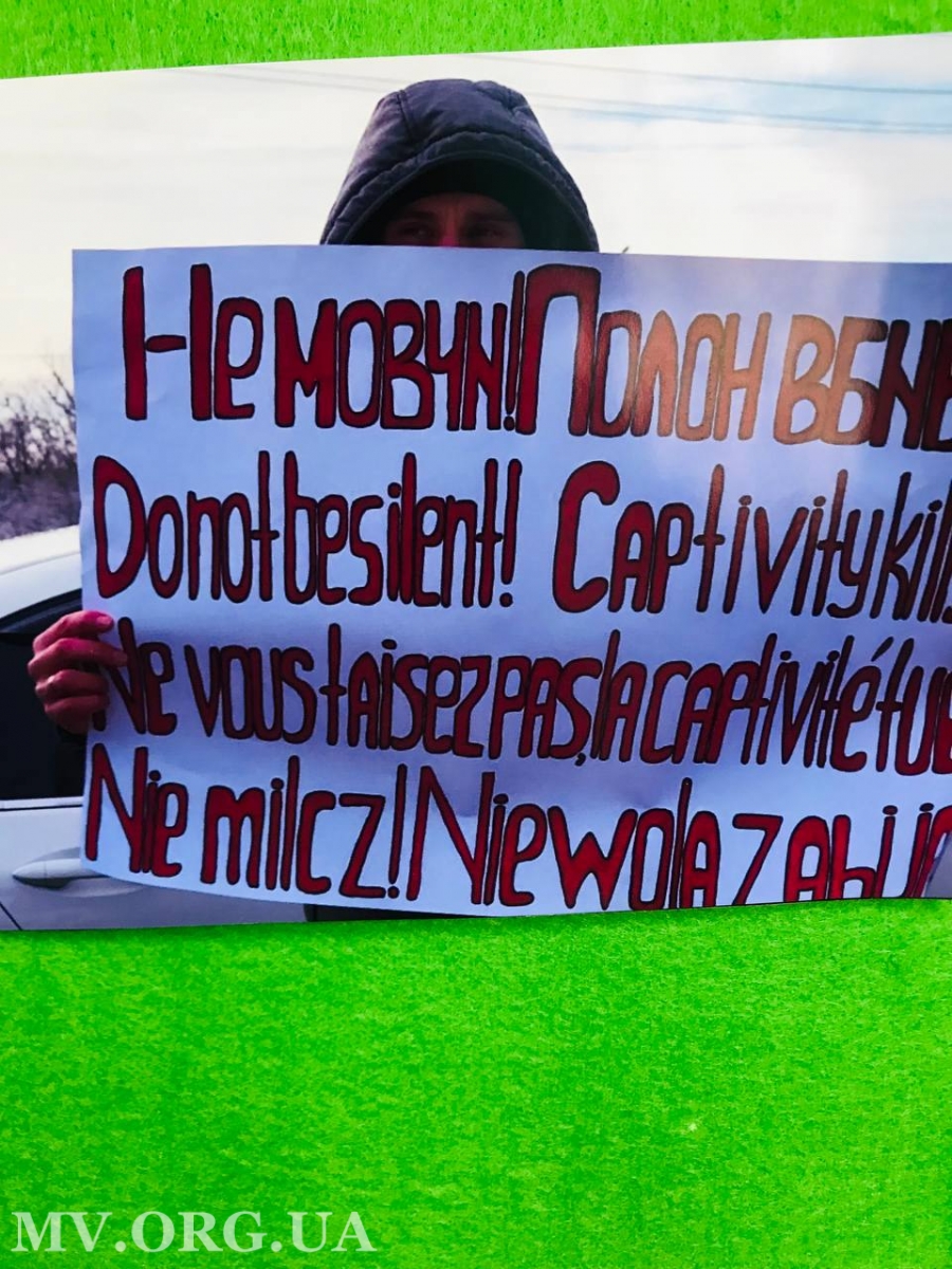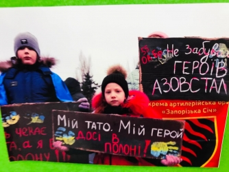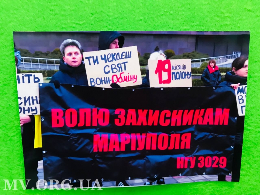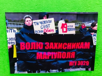 ... А на площі біля бібліотеки, де проходив захід, стояв хлопець з плакатом, який стосувався теми зустрічі з родинами військовополонених - поверніть "азовців" додому.