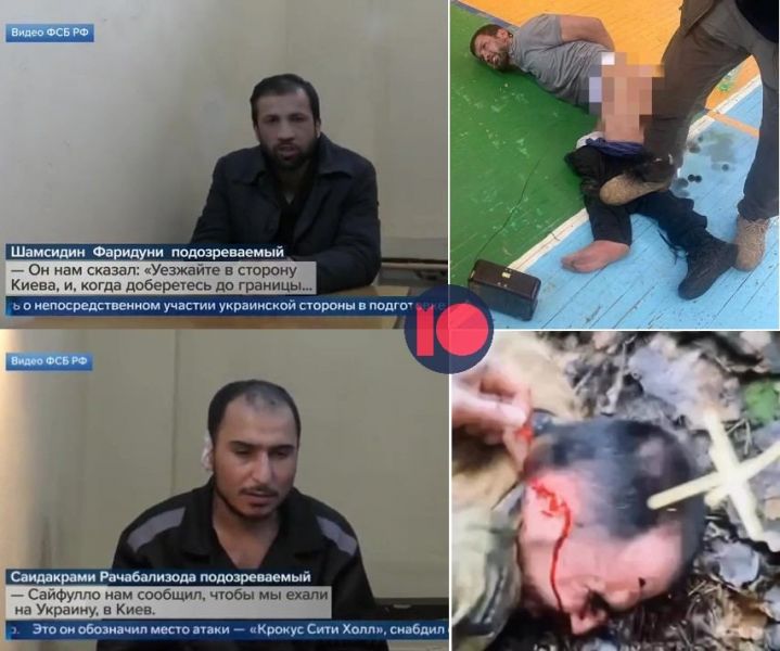«Первый канал и «Россия» опубликовали новое видео допроса обвиняемых в теракте в «Крокус Сити Холле». Они рассказали, что по указанию куратора Сайфулло поехали в Украину. Как минимум двоих из четверых обвиняемых пытали, судя по обнародованным ранее кадрам: одному отрезали ухо, он до сих пор с бинтом на голове; второго пытали током.