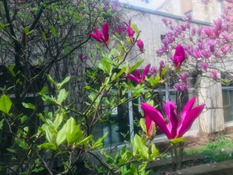 Зараз у дендропарку дуже гарно — цвітуть дерева, кущі, розпустилися тюльпани і нарциси. У розпалі цвітіння магнолій на просторі поруч з адмінкорпусом
