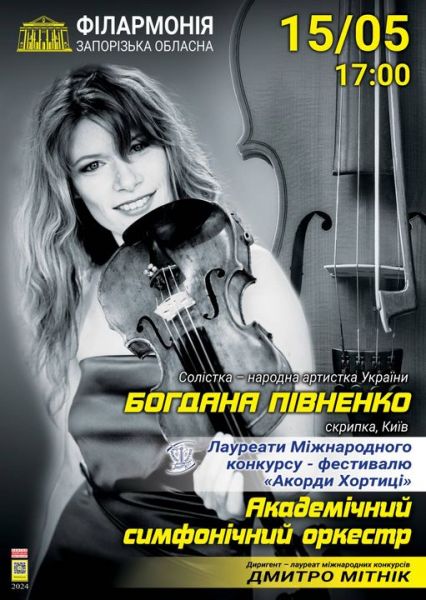 15 травня у філармонії відбудеться знакова культурна подія - концерт, підготовлений у партнерстві з Міжнародним конкурсом-фестивалем дитячого та юнацького виконавського мистецтва «Акорди Хортиці». На одній сцені виступатимуть академічний симфонічний оркестр під орудою диригента, лауреата міжнародних конкурсів Дмитра Мітніка, відома фантастична скрипалька, народна артистка України Богдана Півненко (Київ) та юні таланти - лауреати ХХІ конкурсу «Акорди Хортиці».