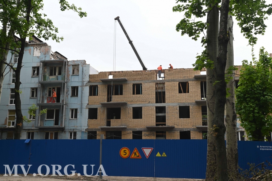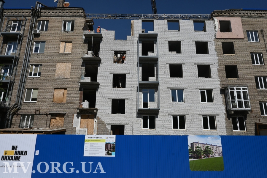 Станом на сьогодні підрядники відновлюють 10 багатоповерхівок. Серед них – і п“ятиповерховий будинок по вул. Незалежної України, 80/Якова Новицького, 3.